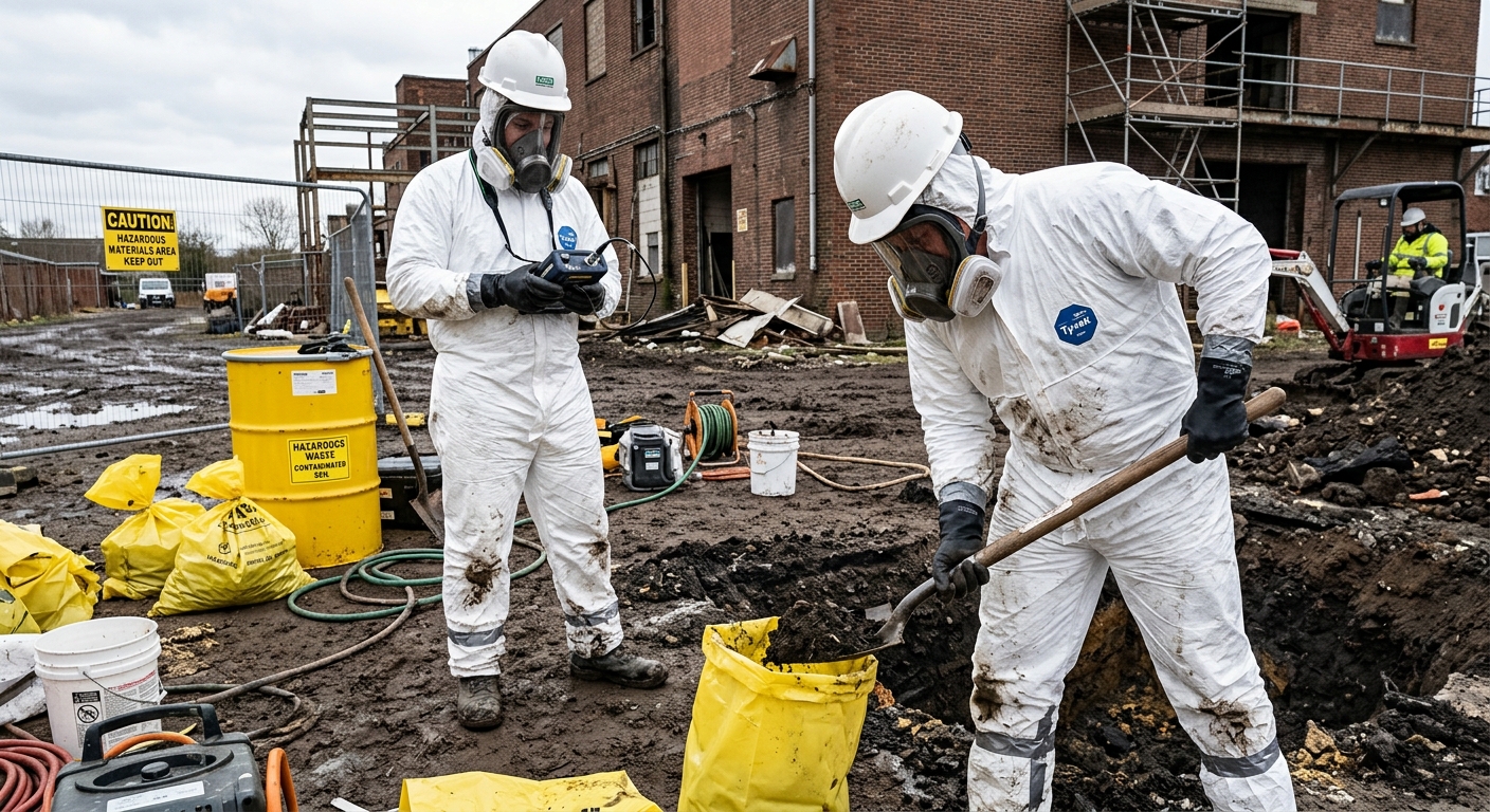 Retrait sécuritaire de matériaux amiantés selon les normes CNESST. Équipes en scaphandre.