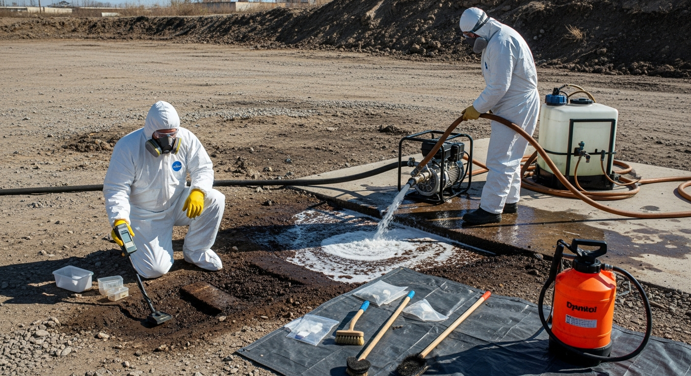 Retrait sécuritaire de matériaux amiantés selon les normes CNESST. Équipes en scaphandre.
